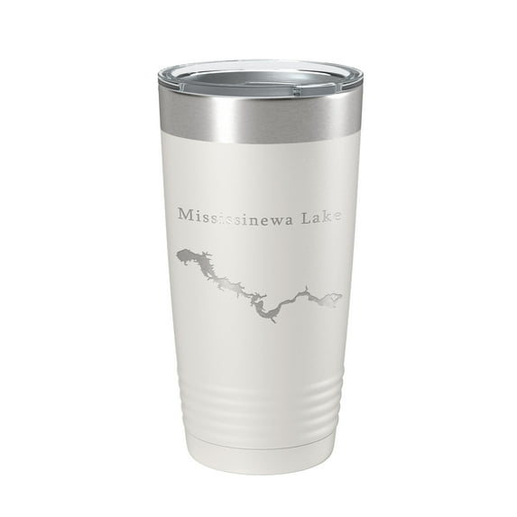 Mississinewa Lake Map Tumbler Travel Mug Insulated Laser Engraved Coffee Cup River Indiana 20 oz White