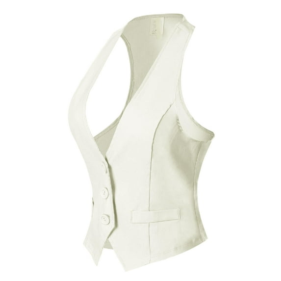 MixMatchy Women's Economy Dressy 3 Button Versatile Racerback Tuxedo Suit Vest Waistcoat Off-White XL - MVEW021