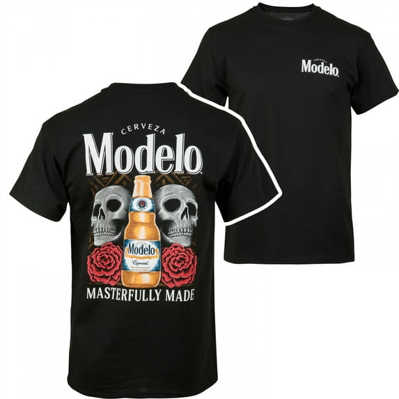 Elevate your casual wardrobe with the Modelo Especial Skulls and Roses Masterfully Made Front/Back T-Shirt. This isn't just a shirt; it's a fusion of edgy aesthetics and the distinctive flavor of Modelo Especial, creating a wearable masterpiece that pays tribute to the bold spirit of the brand.