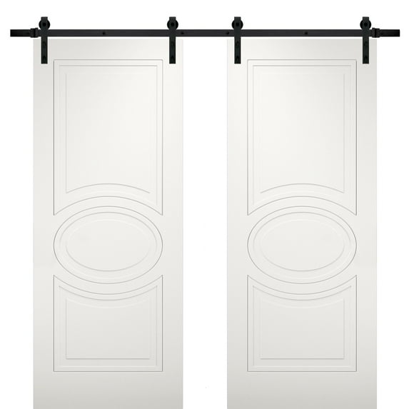 Hero image 0 of Modern Double Barn Door 60 x 96 inches / Mela 7001 Matte White / 13FT Rail Track Set / Solid Panel Interior Doors, 0 of 3