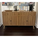 Modern Farmhouse Buffet Cabinet, 4-Doors 3-Drawers Wood Coffee Bar Cabinet with Adjustable Shelves, WalnutModern Farmhouse Buffet Cabinet 4 Doors 3 Drawers Wood Coffee Bar Cabinet with Adjustable Shelves WalnutModern Farmhouse Buffet Cabinet 4 Doors 3 Drawers Wood Coffee Bar Cabinet with Adjustable Shelves Natural