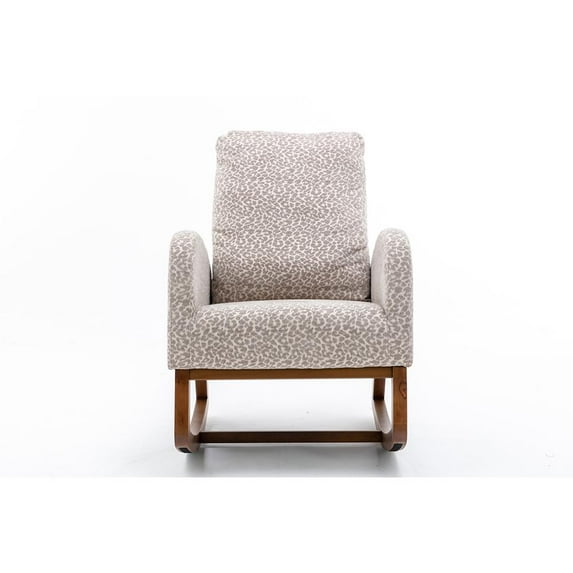 Hero image 0 of Modern Rocking Chair Upholstered Tall Back with Wooden Frame for Guest Room, Mid-Century Nursery Rocking Armchair Accent Glider Rocker with Side Pocket for Living Room (Leopard Gray), 0 of 8
