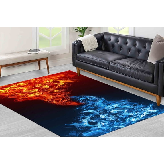 Hero image 0 of Modern Rugs, Rugs, Fire Vs Water War Rug, Wedding Rugs, Fire Rug, Water Rug, Decorative Rugs, Kitchen Rugs, Pattern Rugs, Red Rug, Blue Rug, 2.6'x6.5' - 80x200 cm, 0 of 5