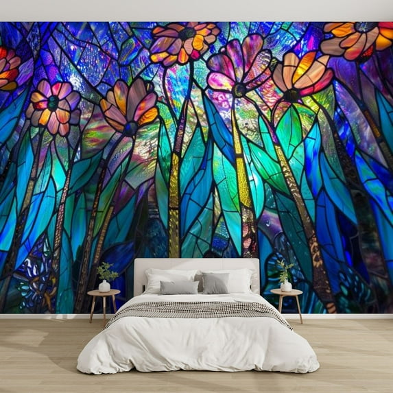 Hero image 0 of Modern Wallpaper Murals 3D Neon Meadow Stained Glass Canopy Abstract Floral Peel and Stick Removable Self-Adhesive PVC Wall Stickers for Nursery Kids Bedroom TV Wall Decor, 0 of 1