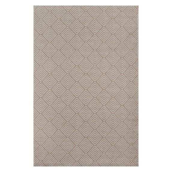 With its graphic repeat of overlapping angles, this modern area rug is an elegant accessory to complete the ultimate outdoor room. Pointed shapes throughout the progressive geometric design suggest a serpentine scale pattern, while the natural beige