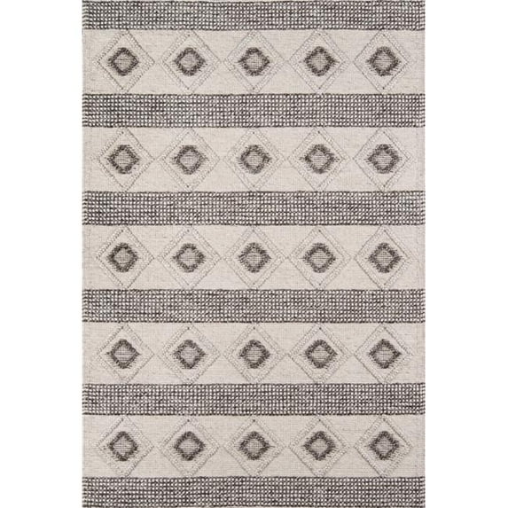 Add a touch of the American Southwest with the earthy styling of this modern area rug. This assortment of decorative floorcoverings features a softly toned grey, beige and blue color palette and high-low pile that accentuates graphic geometric patterns like diamonds and stripes. With balanced, rustic designs, this elegant series of hand-tufted wool rugs brings long-lasting elegance to high-traffic areas and restful spaces alike.