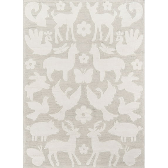 Decorated with flora and fauna, kids will be delighted with the menagerie of critters like llamas, deer, birds, pigs, and bunnies atop this hand-hooked rug. Made of one hundred percent cotton, the soft grey and white colors will look at home in a gender-neutral nursery, playroom, or kids room. Plus, its super soft texture makes it a pleasure to play on too. While the pattern is decidedly kid-friendly, its animal theme will be one that can grow with your child well into their early tweens thanks to the design’s nod to Scandinavian style.