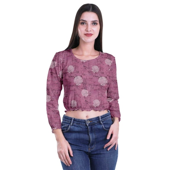 Moomaya Crop Top Long Sleeve For Women Printed Casual Summer T Shirt Crop Top