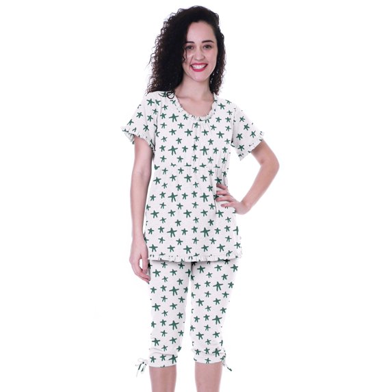Hero image 0 of Moomaya Printed CottonNightwearSet For Womens Top & Capri Pant 2 Piece Sleepwear, 0 of 5