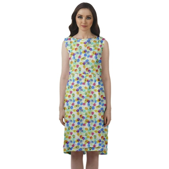 Hero image 0 of Moomaya Printed Knee Length Shift Dress Boat Neck Sleeveless Summer Clothing, 0 of 1