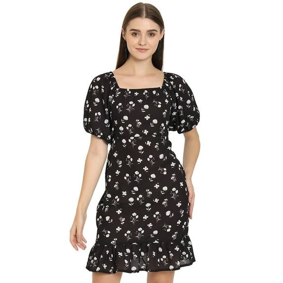Hero image 0 of Moomaya Printed Square Neck Sheath Dress, Puff Sleeve Short Ruffle Hem Dress, 0 of 9