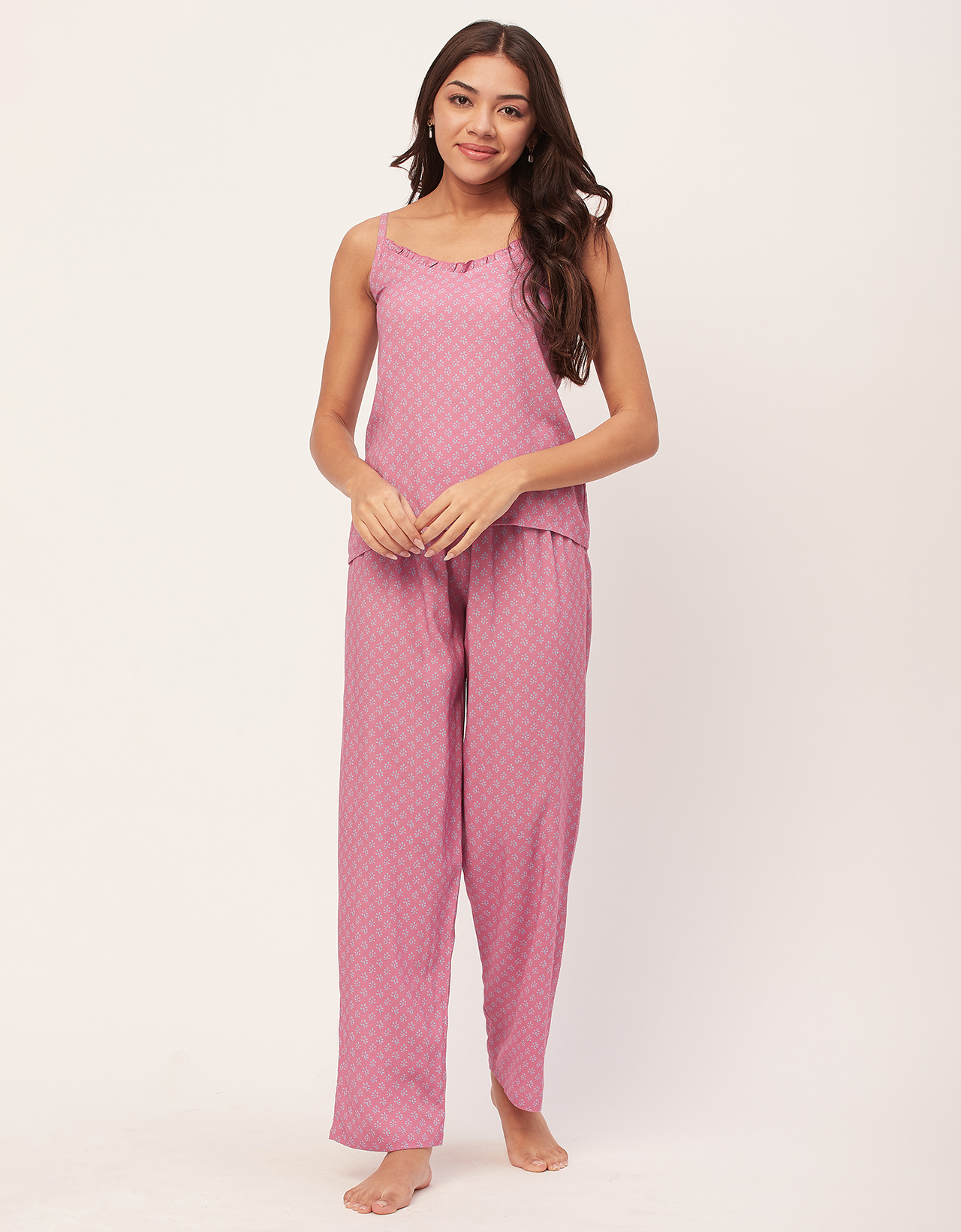 Hero image 0 of Moomaya Sleepwear, Spaghetti Strap Top Pajama Set, Chic Cami Pant Pjs Night Suit For Women'S, 0 of 9