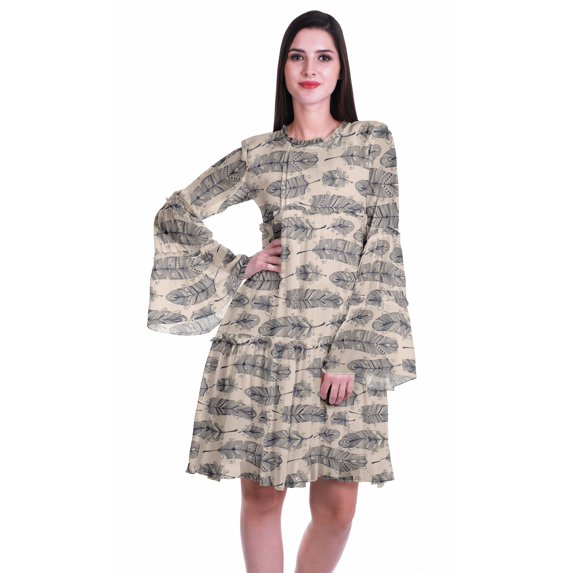 Hero image 0 of Moomaya Womens Long Sleeve Printed Knee Length Dress Flared Flowy Summer Dress, 0 of 6