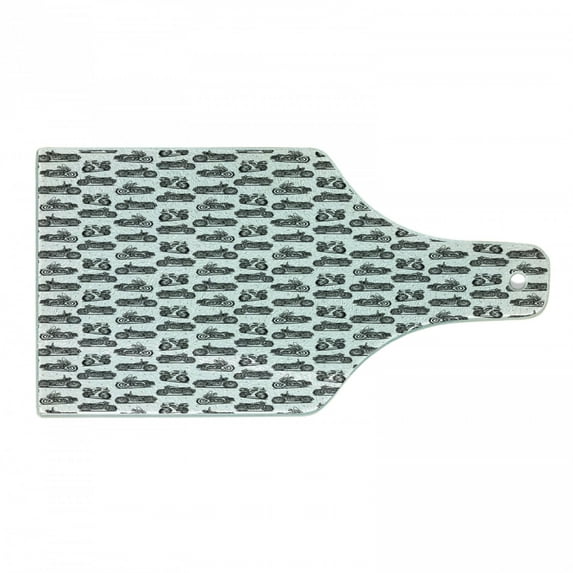 Hero image 0 of Motorcycle Cutting Board, Retro Motorcycle Drawings of Old-Fashioned and Modern on White Background, Tempered Glass Cutting and Serving Board, Wine Bottle Shape, Grey White Black, by Ambesonne, 0 of 1