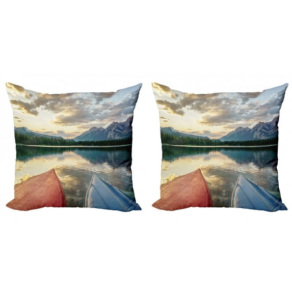 Hero image 0 of Mountain Throw Pillow Cushion Cover Pack of 2, Edith Lake with Old Boats During Sunset in Jasper Alberta Canada, Zippered Double-Side Digital Print, 4 Sizes, Slate Blue Multicolor, by Ambesonne, 0 of 2