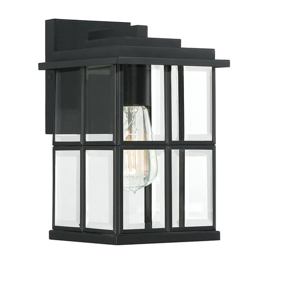 Add instant curb appeal to your home with the Mulligan outdoor collection. The rectangular frame and glass panels create a transitional feel that complements a modern farmhouse or craftsman style home. Finished in matte black with clear beveled glass, this collection is sure to make a great first impression.