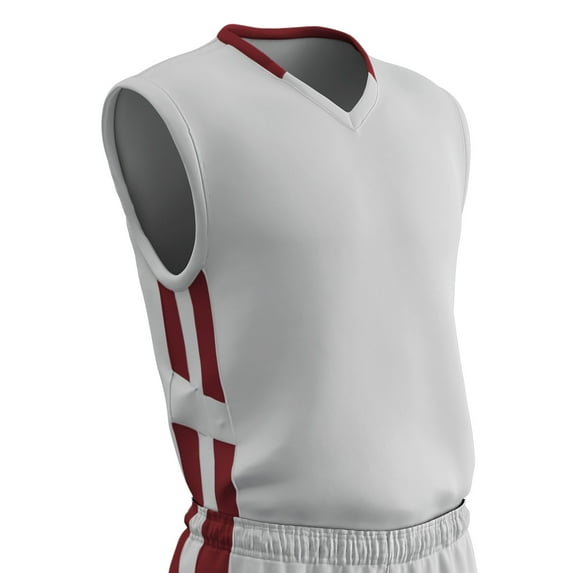Hero image 0 of Muscle Basketball Jersey, Youth Medium, White with Cardinal Red Highlights, 0 of 2