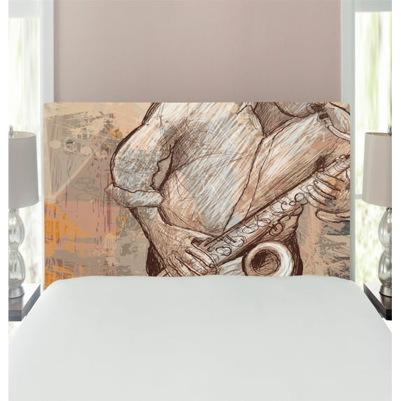 Hero image 0 of Music Headboard, Jazz Musician Playing the Saxophone Solo in the Street on Grunge Background Art Print, Upholstered Decorative Metal Bed Headboard with Memory Foam, Twin Size, Brown Ecru, by Ambesonne, 0 of 4