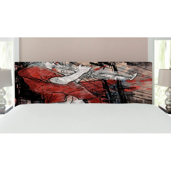 Music Headboard, Trumpet Musician on Grunge Cityscape Background in the Night Boho Art Print, Upholstered Decorative Metal Bed Headboard with Memory Foam, King Size, Red Black White, by AmbesonneMusic Headboard Trumpet Musician Grunge Cityscape Background Night Boho Art Print Upholstered Decorative Metal Bed Headboard Memory Foam King Size ReMusic Headboard Trumpet Musician Grunge Cityscape Background Night Boho Art Print Upholstered Decorative Metal Bed Headboard Memory Foam Twin Size Re