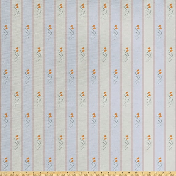 Muted Colors Sofa Upholstery Fabric by the Yard, Flowers on Vertical Stripes Calming Vibes, Decorative Fabric for DIY and Home Accents, Sage Green Ceil Blue by Ambesonne