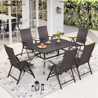 ClearanceSponsoredNow $355.78current price Now $355.78$1,038.86Was $1,038.86More options from $252.55Alpha Joy 7 Piece Patio Dining Set Foldable Adjustable PE Rattan Patio Dining Chairs and Rectangle Metal Table74.3 out of 5 Stars. 7 reviewsShipping, arrives in 3+ daysOutdoor Dinning Set, Patio Furniture Set, Patio Set with 2 Folding Chairs, 1 Glass Table & 1 Umbrella