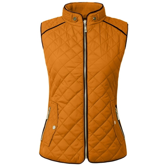 NE PEOPLE Women’s Quilted Vest – Lightweight Sleeveless Full Zip Up Casual Stand Collar Padding Gilet Jacket with Pockets NEWV40 Dark Mustard 3XL