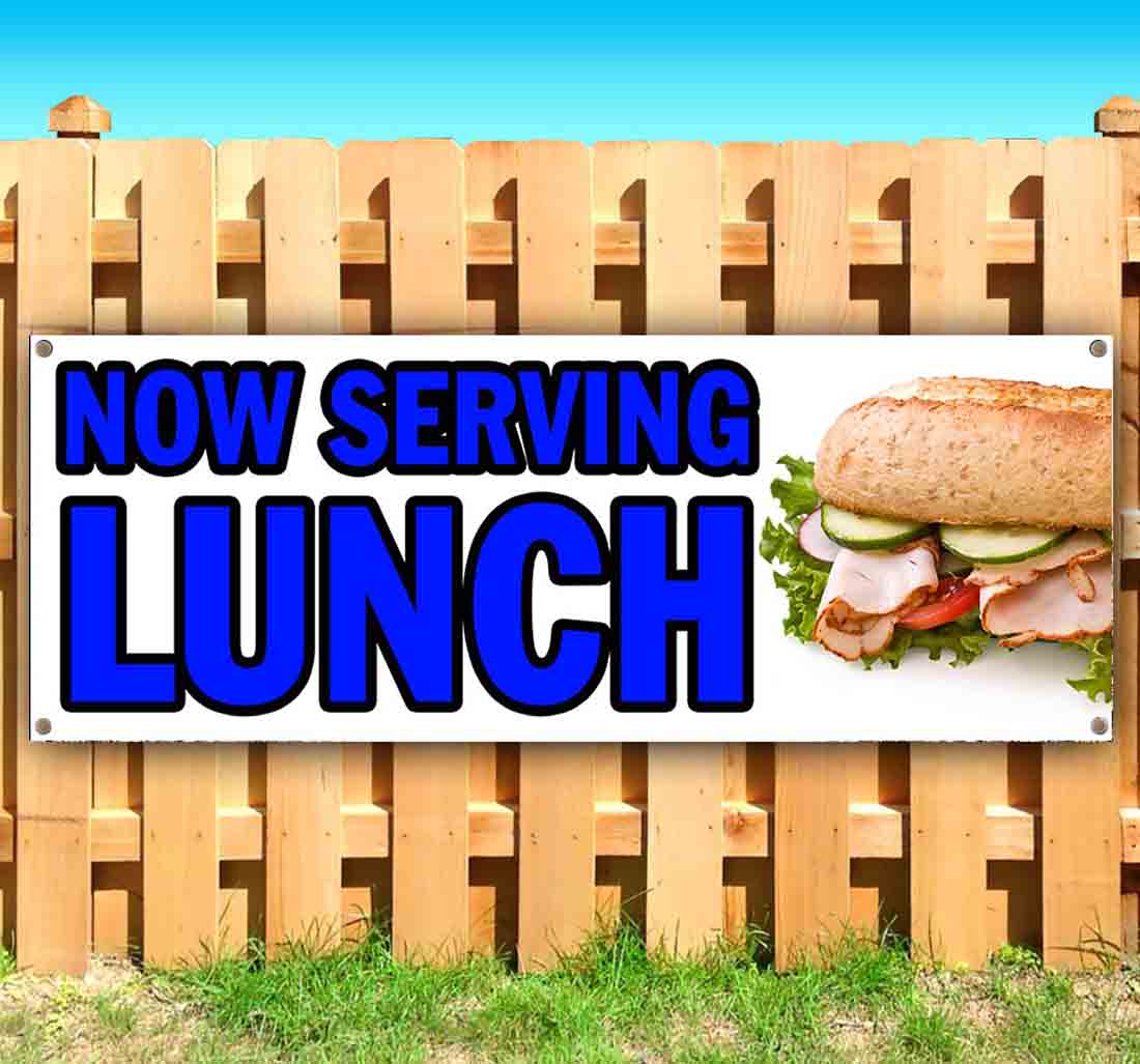 Now Serving Lunch 13 oz Vinyl Banner With Metal Grommets