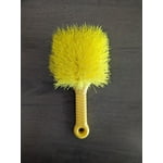 - The brush has yellow polypropylene fiber bristles and a yellow plastic structural foam block and handle.