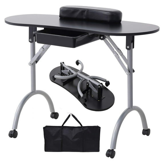 Nail Table -SUNCOO Manicure Station Portable Folding Nails Desk Spa Beauty Salon with Rolling Wheels,Sponge Wrist Cushion,Large Storge Drawer,Carry bagNail Table SUNCOO Manicure Station Portable Folding Nails Desk Spa Beauty Salon Rolling Wheels Sponge Wrist Cushion Large Storge Drawer Carry bag