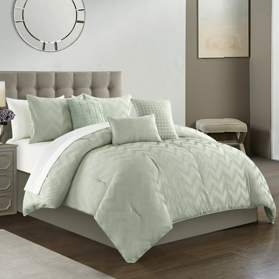 Hero image 0 of Natalia 6 Piece Comforter Set Plush Ribbed Chevron Design Bedding - Decorative Pillows Shams Included, 0 of 4