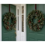 - : Features lights and natural elements like pine cones and berries.