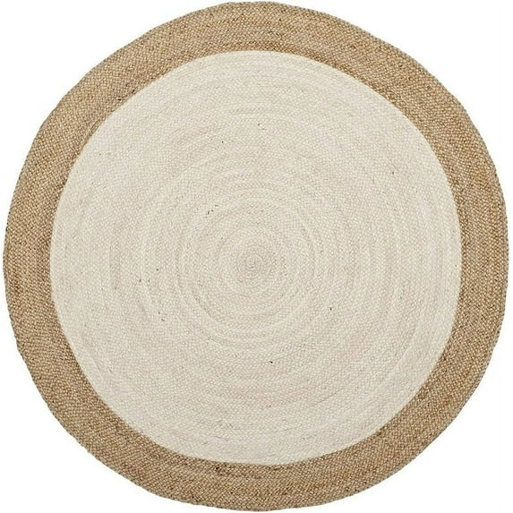 Natural Farmhouse Inner White Jute Round Rug Size 6 x 6 Feet
