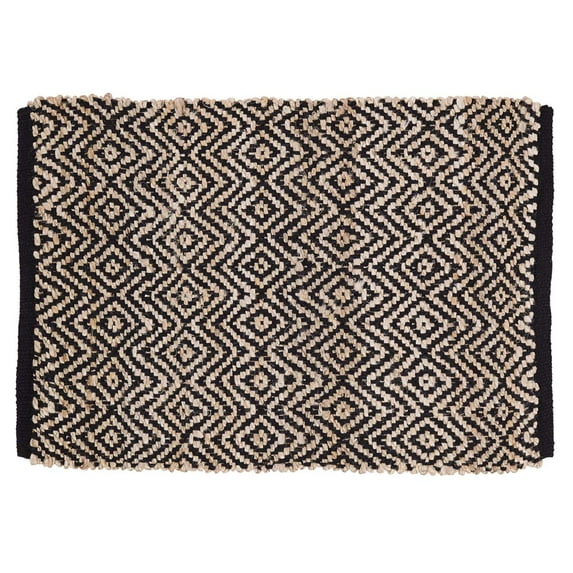- Creme cotton and natural jute fiber woven into a diamond motif
