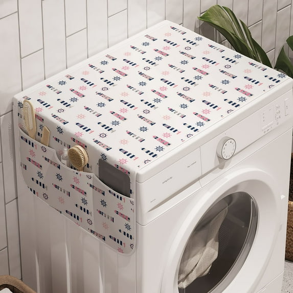 Hero image 0 of Nautical Washing Machine Organizer, Sea Coast Theme Steering Wheel and Lighthouse Ocean Themed Marine, Anti-slip Fabric Top Cover for Washer and Dryer, Pastel Pink Pearl Indigo, by Ambesonne, 0 of 1
