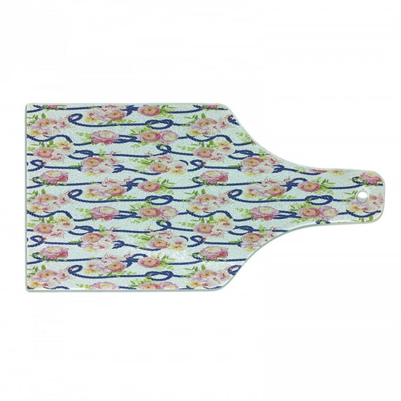 Hero image 0 of Navy and Blush Cutting Board, Twisted Blue Marine Rope and Bouquets of Spring Roses and Orchid, Tempered Glass Cutting and Serving Board, Wine Bottle Shape, Navy Blue Pink Green, by Ambesonne, 0 of 1