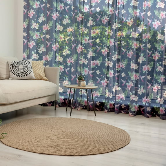 Hero image 0 of Navy and Blush Tulle Curtains with Rod Pocket, Tropical Flower Bouquets and Flying Hummingbirds Tiny Little Hearts, Sheer Drape for Wedding Party 2 Panels, 7 Sizes, Indigo Green Pink, by Ambesonne, 0 of 3
