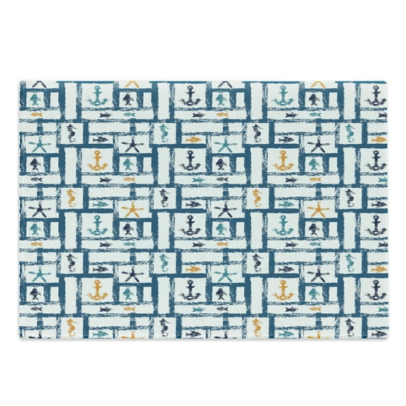 Hero image 0 of Navy Cutting Board, Marine Grunge Starfish Anchor Seahorse Underwater Marine Murky Design, Decorative Tempered Glass Cutting and Serving Board, Large Size, Petrol Blue Marigold, by Ambesonne, 0 of 1