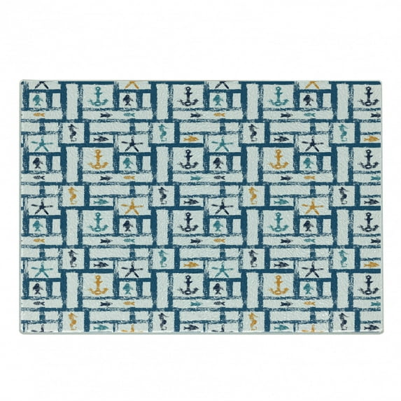 Hero image 0 of Navy Cutting Board, Marine Grunge Starfish Anchor Seahorse Underwater Marine Murky Design, Decorative Tempered Glass Cutting and Serving Board, Small Size, Petrol Blue Marigold, by Ambesonne, 0 of 1