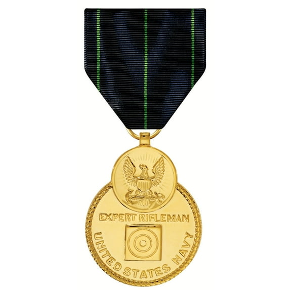 Criteria: Designed by the U.S. Mint and is awarded to members of the U.S. Navy and Naval Reserve who qualify as Expert with a rifle on a prescribed military rifle course.