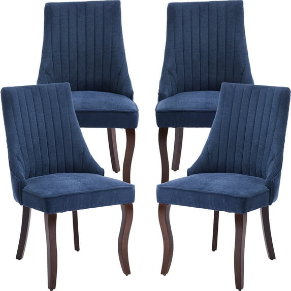 Hero image 0 of Navy Mid Century Dining Chairs Set of 4, Modern Kitchen & Dining Room Chairs Set of 4, Linen Upholstered Kitchen Chairs for Dining Table, Sillas de Comedor, Wood Legs (Blue, 4 Pcs), 0 of 12