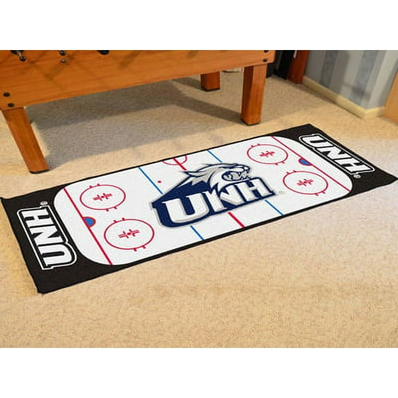 The ice might be cool but these hockey Rink Runners are red hot! Rink Runners are look like an actual hockey rink and feature the team logo in the middle and team name behind the nets. Made in U.S.A. with 100% nylon carpet and non-skid recycled vinyl backing. Machine washable; vacuum regularly and spot clean for any easy and quick clean. Chromojet printed in true team colors.