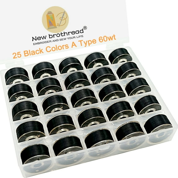 New brothread 25pcs Black 60WT Prewound Bobbin Thread Size A SA156