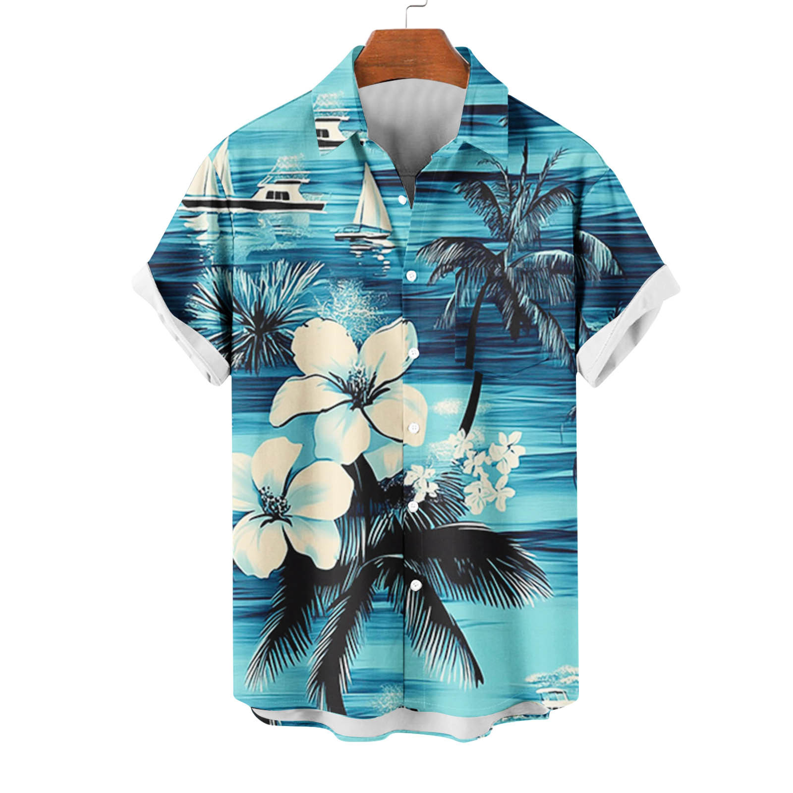 Hero image 0 of New summer arrivals SSAAVKUY Floral-Vibes Fashion-Print Hawaii Colorful Stylish-Shirt Casual Suits Standard-Fit Button Up Vacation Beach Shirts Sky Blue XXXXXL, 0 of 4