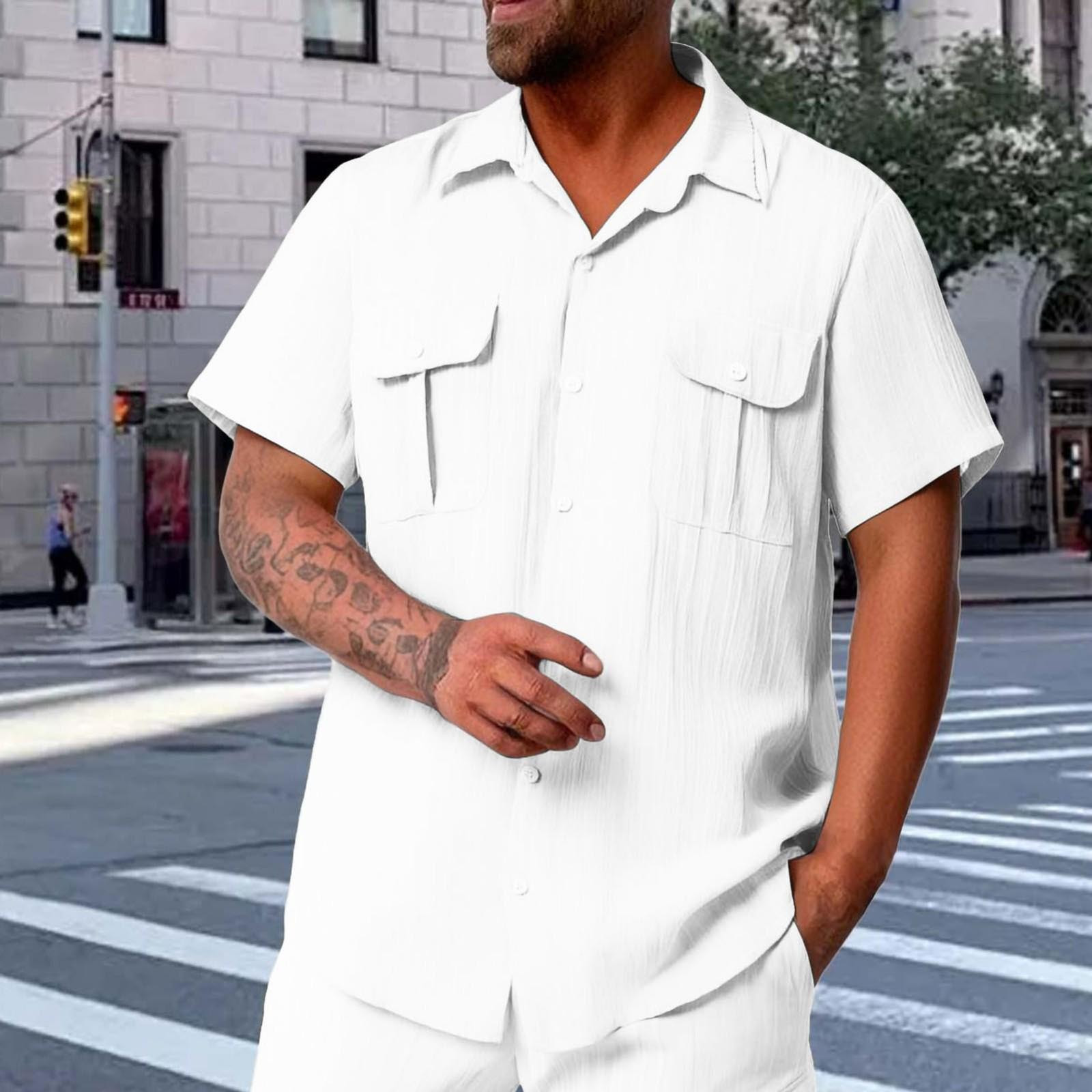 New summer arrivals YLSDY Mens Button Down Shirt Regular Fit Short Sleeve Casual Stylish Beach Shirts Vintage Basic Collared Shirt with Pockets White S
