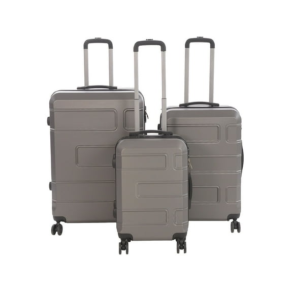 Style meets strength and functionality. This Club Rochelier Deco luggage set is designed to accommodate most of your travel needs. Each piece in the set is packed with contemporary features like spinner wheels, a telescoping trolley system, an integrated locking mechanism, and a spacious interior with cross straps and organizational pockets. Whether you are going on a business trip or a holiday, the three sizes ensure that you can carry everything you need. Made of ABS plastic with 100% polyester lining and comes in charcoal color. Features top and side carry handles, a two-way zip-around closure, as well as an integrated high-quality combination lock on all sizes. Overall dimensions: 23"H x 14"W x 9.45"D (carry-on), 27"H x 17"W x 10"D (medium), 31"H x 20"W x 12"D (large). All interiors offer security cross straps, a zip compartment, and a mesh pocket. Each piece in the set is equipped with a push-button telescopic handle system with multistage locking heights. 360-degree spinner wheels allow for smooth, effortless mobility. 5-year manufacturer limited warranty. Sold as 1 Set.