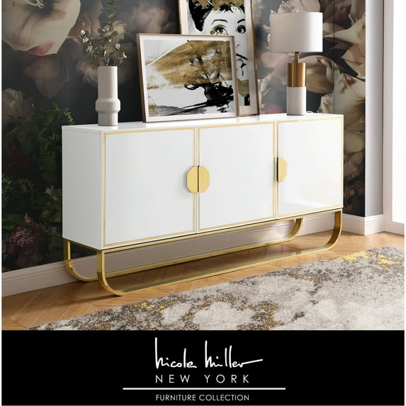 Nicole Miller Kenzington Sideboard with 3-Doors, White/Gold