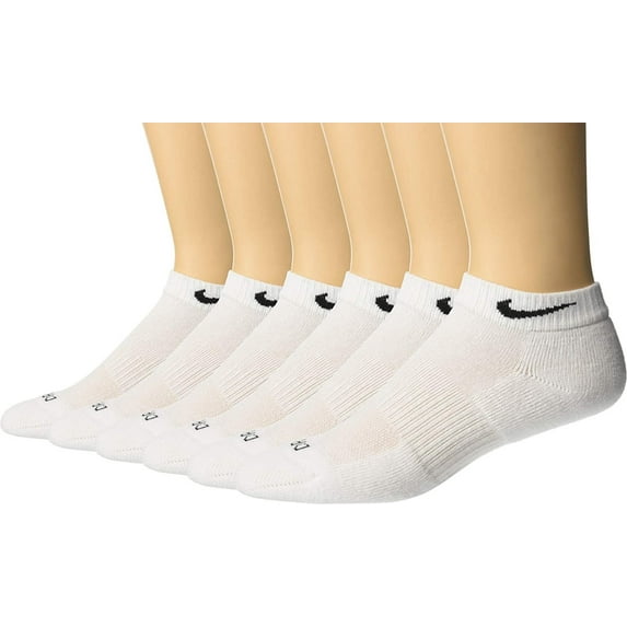 Men's Nike 6-pack Everyday Plus Cushioned Low-Cut Training Socks Color: White Size: 8-12Nike Dri FIT Everyday Plus Cushion Training Low Socks 6 PackNike Dri FIT Everyday Plus Cushion Training Low Socks 6 PackWomen s Nike 6 Pack Everyday Cushioned Socks Color Black Size N A