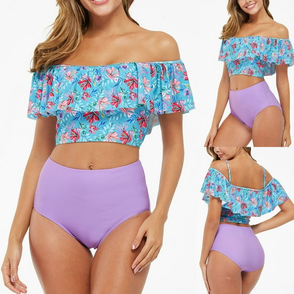 Njoeus Swimsuit Women Bathing Suit Women'S Two-Piece Swimsuit Frilly High Waist Bikini Frilly Swimsuit With Panties Bikinis For Women On Clearance