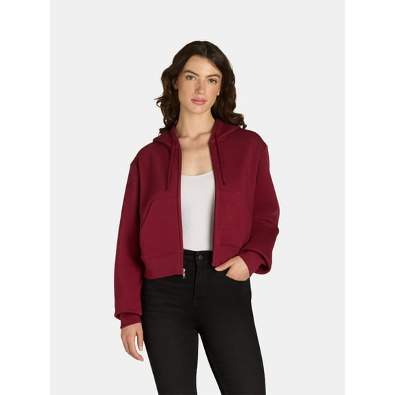No Boundaries Cropped Fleece Zip Hoodie, Women’s
