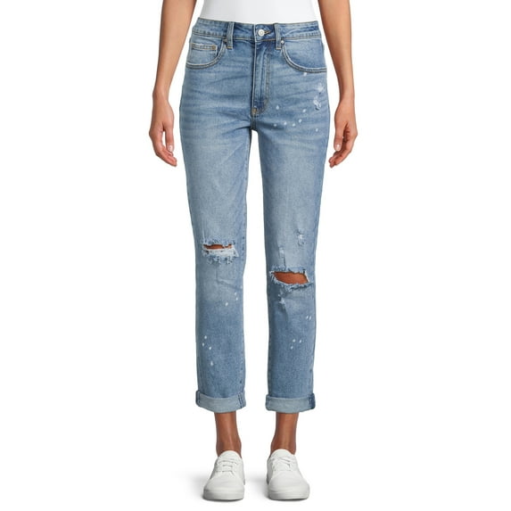 No Boundaries Juniors’ High Rise Destructed Girlfriend Jeans